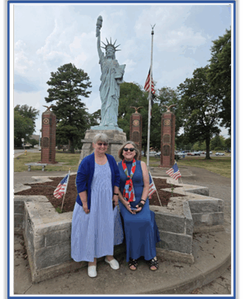 Olde Towne Fenton chapter members stopped to visit the Liberty Sister statue in Cape Girardeau, Missouri, on the corner of Capaha Park. It looks good but does need the plaque and her foot repaired.