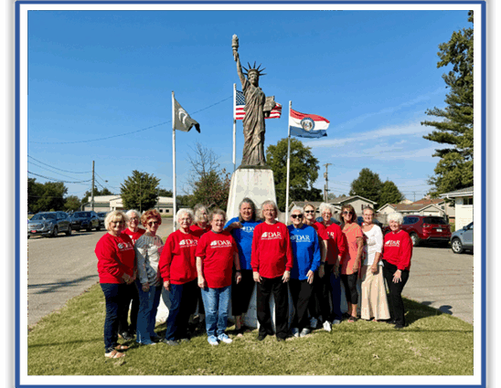 Chalk Bluff Chapter members met at the Liberty Sister in Malden on Saturday , October 18. It was a windy day! This Liberty Sister is located near the entrance of the Malden Elementary School on Downing Street. It can be seen from N Douglas Street. The Liberty Sister has a “star” base. Flowers had been planted inside the star. The statue is in fairly good shape.