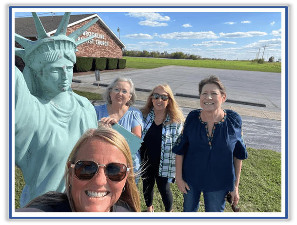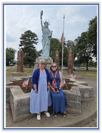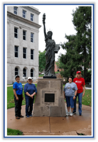 Olde Towne Fenton chapter members stopped to visit the Liberty Sister statue in Cape Girardeau, Missouri, on the corner of Capaha Park. It looks good but does need the plaque and her foot repaired.